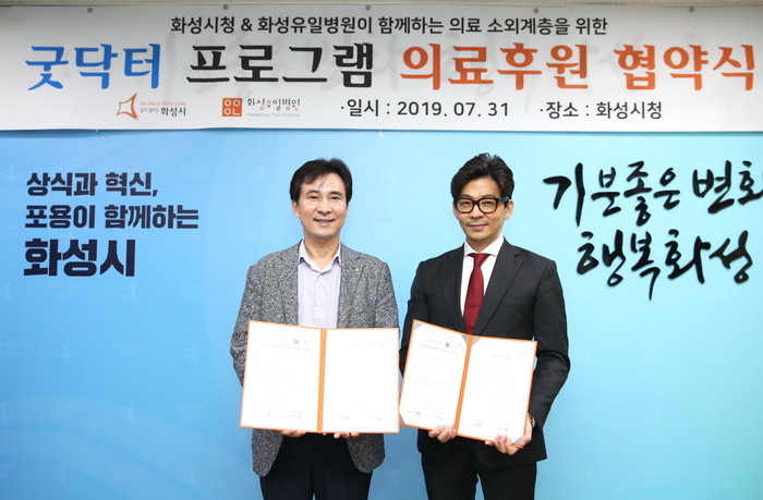 이날 협약식에는 서철모 화성시장, 허일 화성유일병원장 등 5명이 참가해 관내 기초수급자, 차상위계층 등 취약계층의 의료지원을 약속했다.