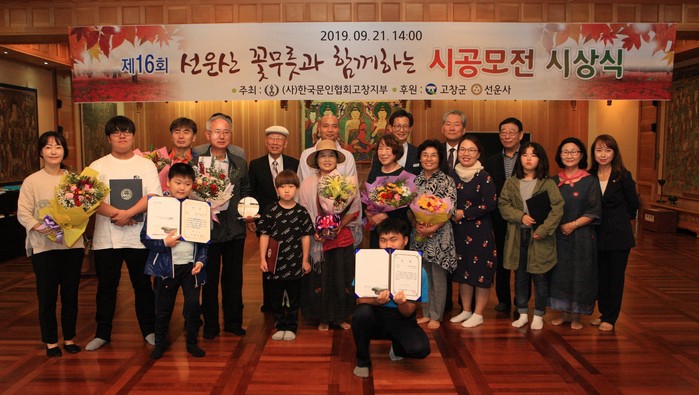 ▲유기상 군수가 ‘제16회 꽃무릇 시화전’ 수상자들과 기념촬영을 하고 있다.(고창군 제공) |