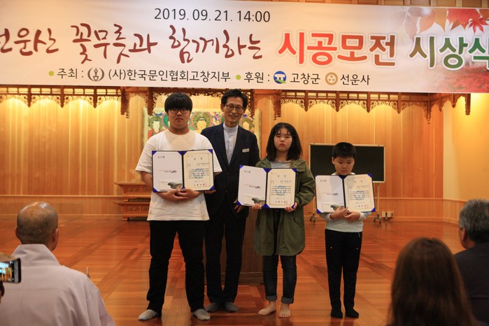 시화전에선 초등부 선동초 3학년 황세웅 학생, 중등부에서는 아산중 3학년 조경미 학생, 고등부에서는 고창북고 2학년 장성민 학생이 금상을 수상하는 등 총 26명이 수상의 영예를 안았다.