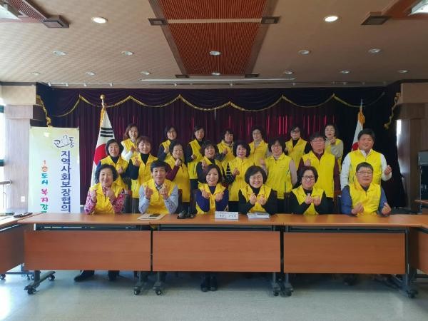 ▲2019년 지역사회보장협의체 정기회의에서 참석자들이 기념사진을 찍고 있다.(강릉시 제공) |