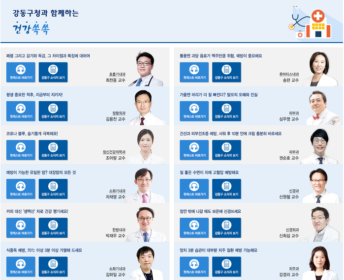 ▲‘건강톡톡’ 팟캐스트 진행 리스트 [강동경희대병원, 강동구청 제공] |