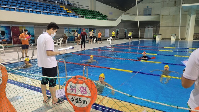 시험 과목은 △영법 △수영구조 △장비구조 △기본구조 △종합구조 △응급처치 △장비기술 등 7개 과목이며, 100점 만점에 총점 60점 이상, 각 과목 만점의 40퍼센트 이상을 득점하면 자격증을 받을 수 있다.