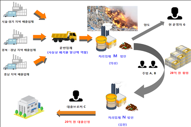 | ▲‘의성 쓰레기산’관련 사건 범행 구조. |