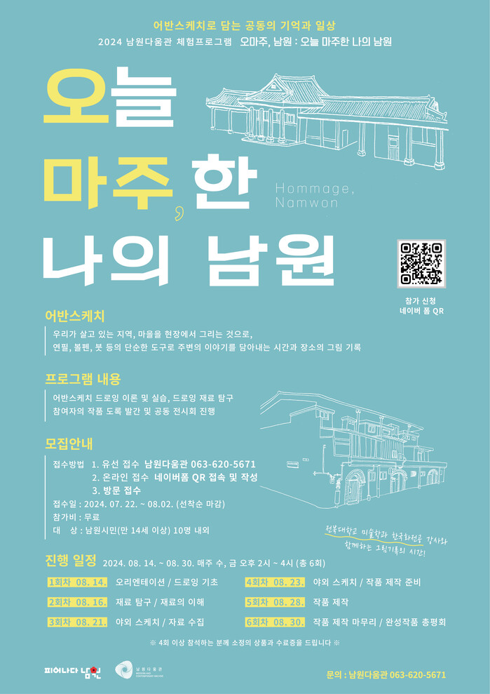 ▲ 어반스케치 체험 프로그램 ‘오마주, 남원: 오늘 마주한 나의 남원 포스터(남원시 제공) |