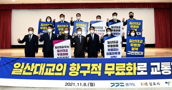 정하영 김포시장은 “교통은 차별 없이 마땅히 보장받아야 할 보편적 서비스”라며 “국민연금공단과 일산대교㈜는 차별적 교통서비스를 감내해온 서북권 도민의 아픔을 외면치 말고 항구적 무료화에 협조해 달라”고 강조했다.