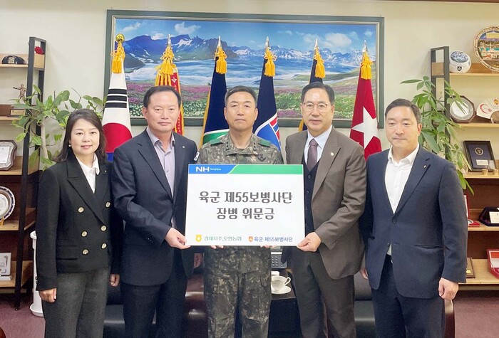 농협은 이날 행사에서 55사단 군납농협 단일화에 따른 효율적인 물류체계 구축 및 급식업무 행정처리 간소화 등을 위한 상호 협력 방안을 논의했다. 또한 55사단에 500만원의 격려금을 전달하며 군 장병들에게 감사의 마음을 전했다.