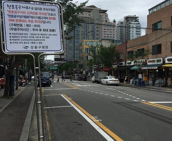 구는 24면 중 천호공구거리 상점에 인접한 16면을 천호공구거리 고객전용주차장으로 운영하고 8면은 주거지주차구획으로 정해 주변 상인과 거주자에게 배정하기로 했다.