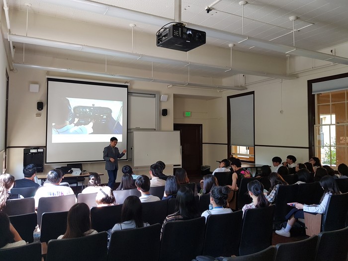 ▲미국 스탠포드대 폴킴교수가 드림 원정대 학생들에게 강연을 펼치고 있다. |