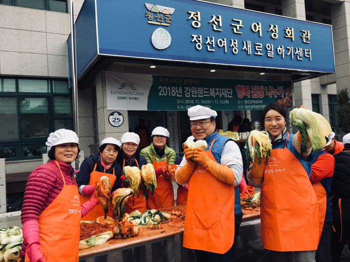 2008년부터 10년째 이어져 오고 있는 ‘행복김장 나누기’ 행사는 재단이 사업비를 지원하고 지역 협력기관과 강원랜드 사회봉사단 등이 함께 김장을 담궈 강원 폐광지역 4개 시‧군에 살고 있는 어려운 이웃들에게 전달하고 있다.