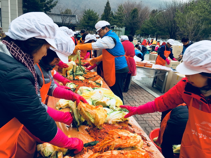 15일 강원도 정선군 여성회관에서는 올해 두 번째 ‘2018 행복김장 나누기’ 행사가 진행되면서 김장김치 총 850박스를 정선군의 저소득 취약계층에 전달해 따뜻한 정을 나눴다.