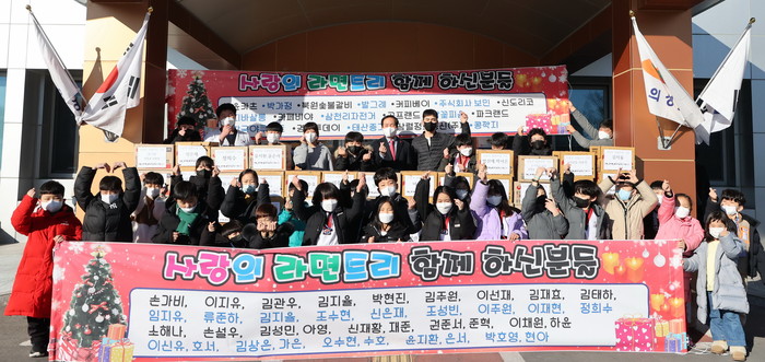 [로컬세계 박상진 기자]경북 의성군(군수 김주수)은 지난 14일 의성전진태권도 학생들과 학부모가 의성군에 소외되고 어려운 이웃들의 따뜻한 겨울나기를 위한 사랑의 라면 109박스를 기부했다고 18일 밝혔다.
