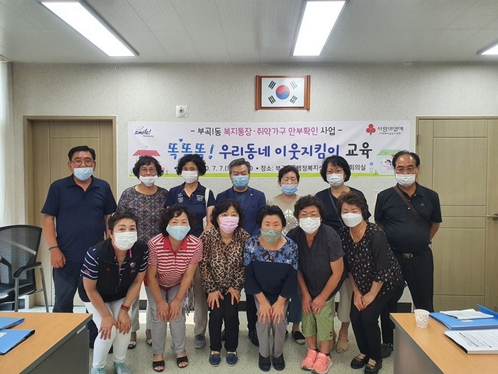 [로컬세계 맹화찬 기자]부산 금정구 부곡1동은 복지통장 14명을 이웃지킴이로 위촉하고 오는 9월까지 혹서기 취약계층의 안부확인을 하는 ‘똑똑똑! 우리 동네 이웃지킴이’사업을 추진한다.
