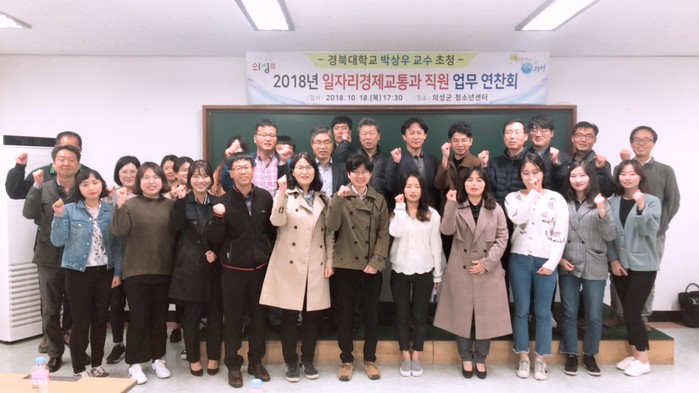 | ▲의성군 일자리경제교통과는 지난 18일 청소년센터에서 일자리경제 관련 업무에 대한 연찬회를 가지며 기념사진을 찍고 있다.(의성군 제공) |