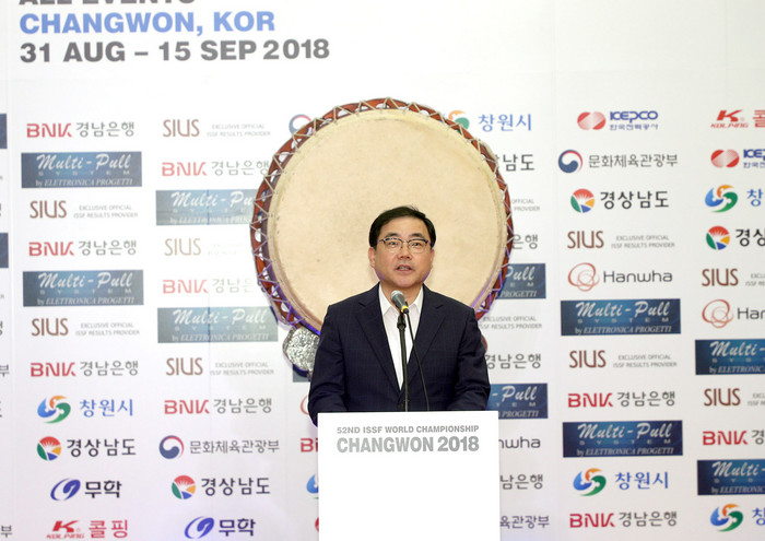 | ▲허성무 창원시장이 14일 2018창원세계사격선수권대회 폐막식에서 창원에서 울린 평화와 희망, 열정의 총성이 차별과 편견을 지우고, 갈등을 치유하는 계기가 되기를 염원한다”고 말했다.(창원시 제공) |