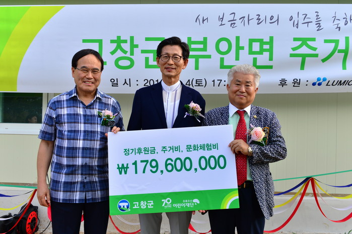 건축비는 고창군민과 고창 소재 기관단체가 후원금을 약정해 의미를 더했으며 이날 많은 후원자들이 생활용품도 전달해 해당 가정의 새로운 출발을 축하했다.