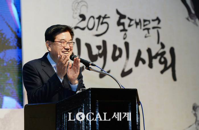 ▲ 유덕열 동대문구청장은 2015 신년인사회에서 내외귀빈들에게 박수로 환영의 뜻을 표하고 있다. ©로컬세계 |