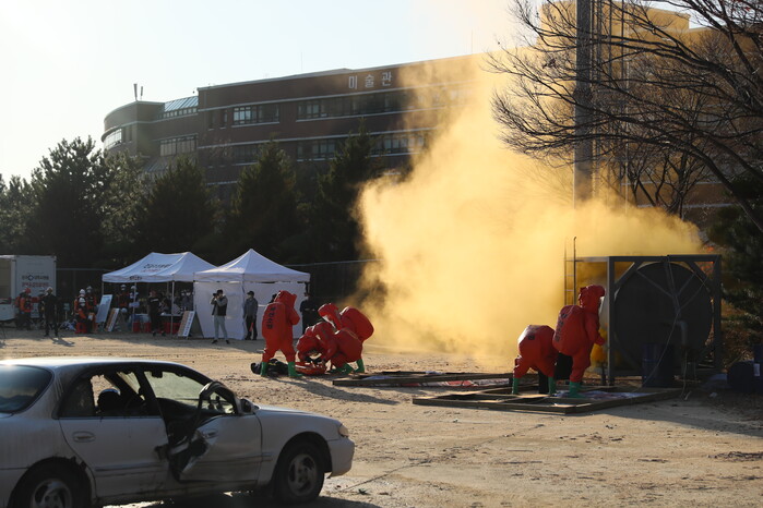 ▲부산소방재난본부는 2022년 소방청이 주관하는 시.도 긴급구조훈련 평가 전국 우수(2위) 기관으로 선정돼 국무총리 표창을 수상했다. 사진은 화학사고 대응 모습. 부산소방재난본부 제공 |