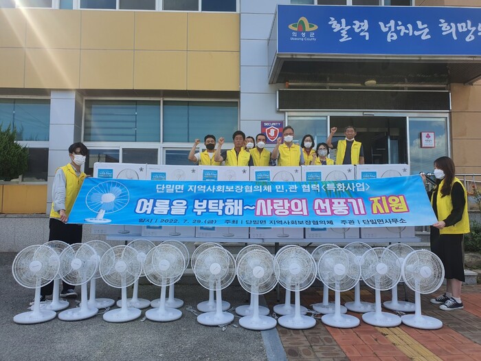 [로컬세계=박상진 기자]경북 의성군 단밀면지역사회보장협의체는 지난달 29일 지역내 저소득 취약가정이 무더운 여름을 시원하게 보낼 수 있도록 ‘여름을 부탁해~사랑의 선풍기 지원’ 행사를 펼쳤다고 2일 밝혔다.