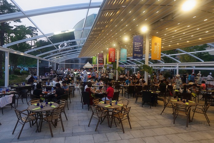 스카이가든 BBQ는 국내 최대 규모의 전동 어닝(차양막) 아래에서 즐길 수 있다.