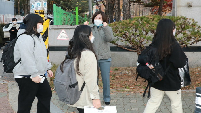 [로컬세계 김병민 기자]김보라 경기 안성시장이 18일 새벽, 간부 공무원들과 함께 2022학년도 대학수학능력시험이 치러지는 학교를 방문해 뜨거운 박수와 응원의 메시지를 보내며 수험생들을 격려했다.