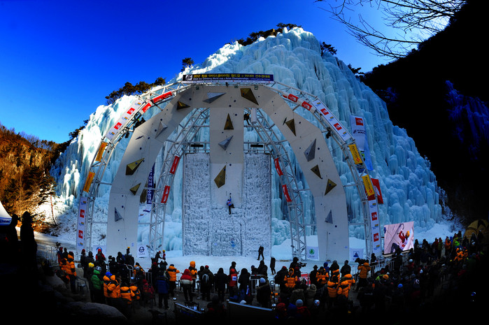 ▲지난 2012년 청송 얼음골에서 열린 아이스클라이밍 월드컵 대회 전경. |