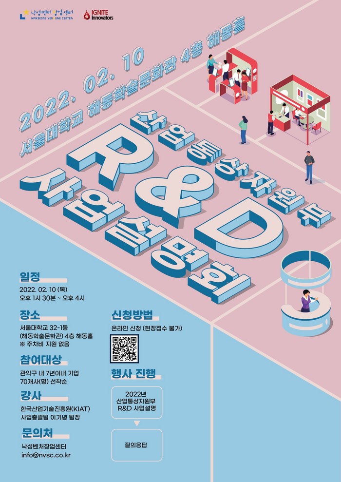 [로컬세계 임종환 기자]관악구(구청장 박준희)가 낙성벤처창업센터 주관 ‘2022년 산업통상자원부 R&D 사업설명회’를 개최한다고 7일 밝혔다.
