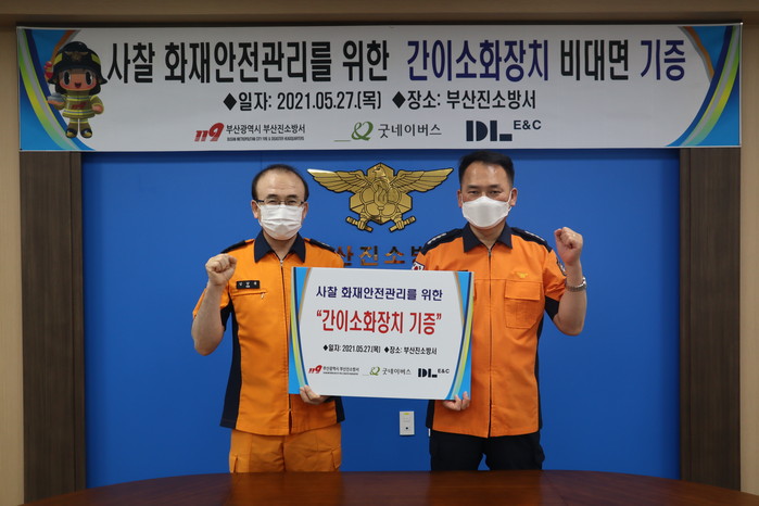 [로컬세계 맹화찬 기자]부산진소방서(서장 최대붕)는 27일 오전 본서 대회의실에서 DL이엔씨와 함께 사찰 화재안전관리를 위한 간이소화장치 비대면 기증행사를 가졌다고 밝혔다.