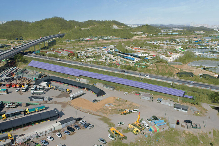 [로컬세계 = 이영원 기자]경기 고양특례시(시장 이동환) 덕양구 현천동 제2자유로 경사면을 활용해 설치된 친환경에너지인 태양광발전시설을 지난 7일 준공됐다.