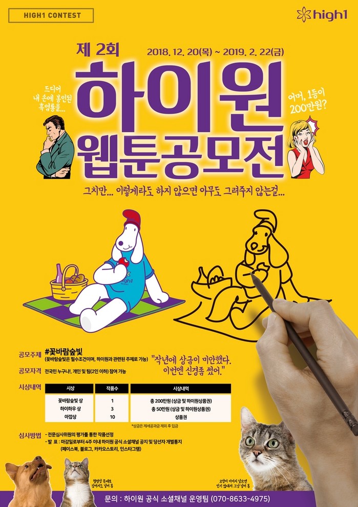 신청은 페이스북, 블로그, 카카오스토리, 인스타그램 등 개인 소셜채널에 작품을 게시한 후, 담당자 이메일(high1contest@gmail.com)로 참가신청서와 작품 파일을 보내주면 된다.