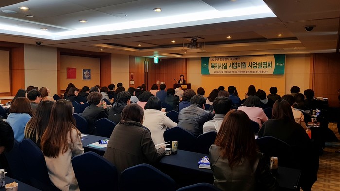 ▲12일 하이원 팰리스호텔에서 진행된 2019년 복지시설 사업지원 사업설명회.(강원랜드 제공) |
