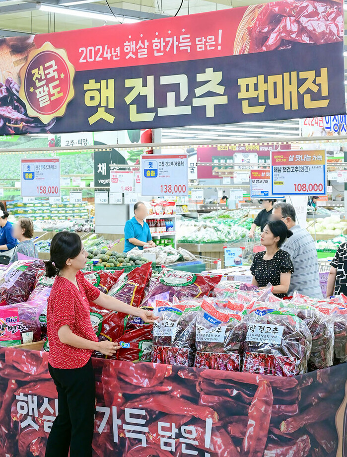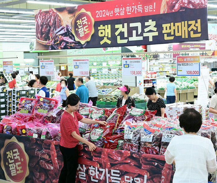 ▲8일 서울 서초구 농협 하나로마트 양재점에 2024년 올해 처음 출하된 태양초 햇 건고추가 판매되고 있다. |