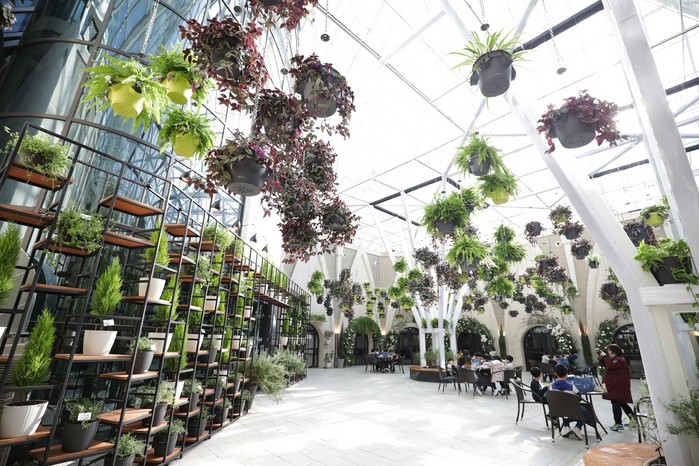 한편 라이팅 갤러리 옆에는 허브 등의 다양한 식물을 만날 수 있는 글라스 가든도 새롭게 조성됐다. 사이프리스, 율마, 로즈마리, 애플민트 등이 뿜어내는 싱그러운 내음과 천장에서 쏟아지는 햇살을 만끽하며 여유를 부릴 수 있는 공간으로 고객들의 발길을 사로잡는다.