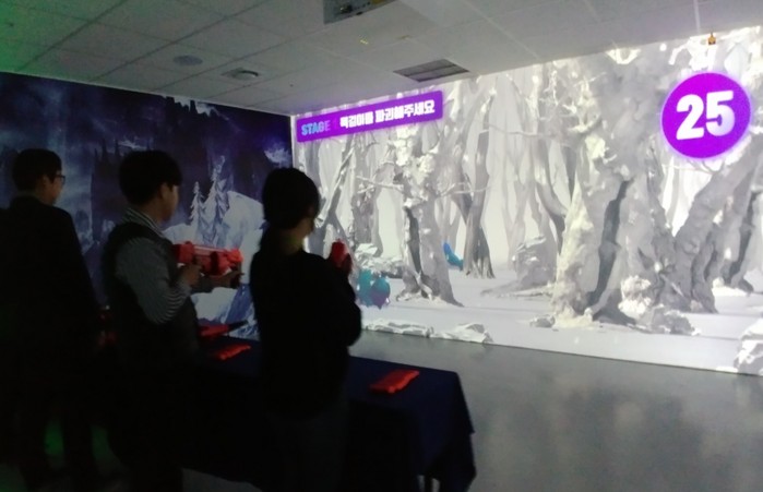 ▲라이팅 갤러리에서 고무총을 쏘면서 미션을 수행하고 있는 아이들의 모습.(하이원리조트 제공) |