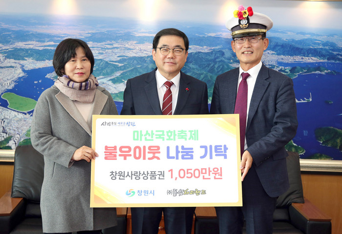 | ▲㈜돝섬해피랜드, 창원시에 창원사랑상품권 1050만원 기탁.(창원시 제공) |