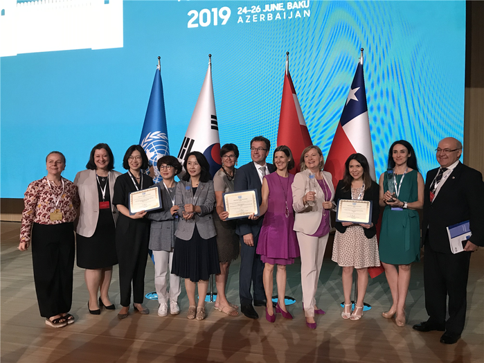 ▲UN공공행정상 수상자들이 함께 단체사진을 찍고 있다. |