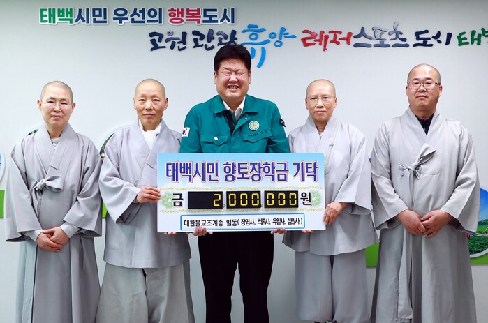 [로컬세계=박상진 기자] 대한불교조계종 4개사는 지난 30일 태백시에 향토장학금 200만원을 기탁했다.