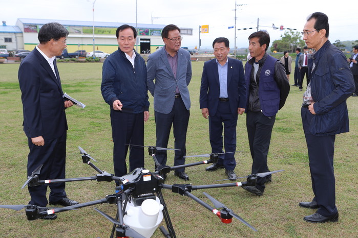 이날 행사에는 신성장동력기 중 하나인 ‘드론’을 활용한 벼 병해충 방제작업 시연을 위해 관심 있는 농업인, 관련단체 등 100여 명이 참석했다.