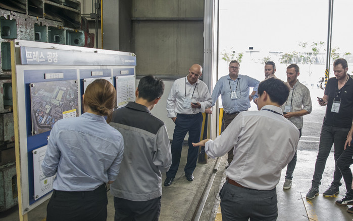 ▲호주 기자단이 지난 25일 쌍용자동차 평택공장을 방문해 라인 현황 브리핑을 경청하고 있다. |