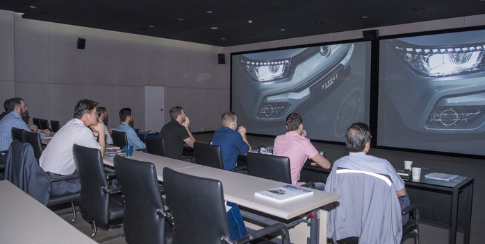 ▲호주 기자단이 지난 25일 쌍용자동차 디자인센터를 방문해 제품 소개 영상을 시청하고 있다.(쌍용차 제공) |