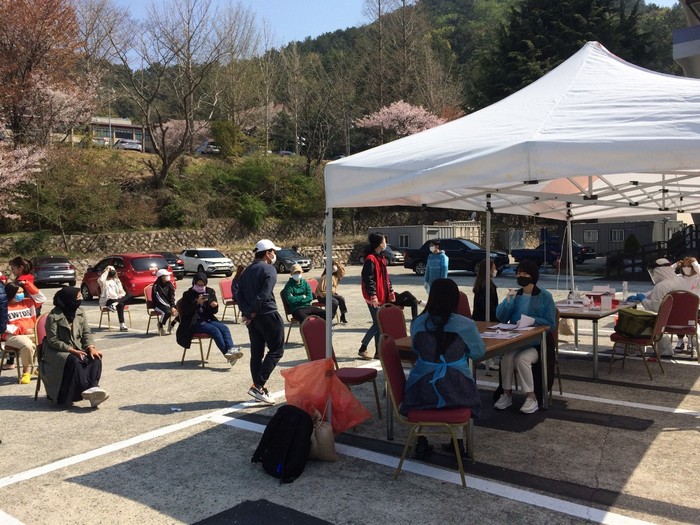 검사는 7일 오전 영산대 운동장에서 진행됐으며 1일 이후 입국한 베트남 27명, 인도네시아 4명 등 31명의 검체를 채취했다.