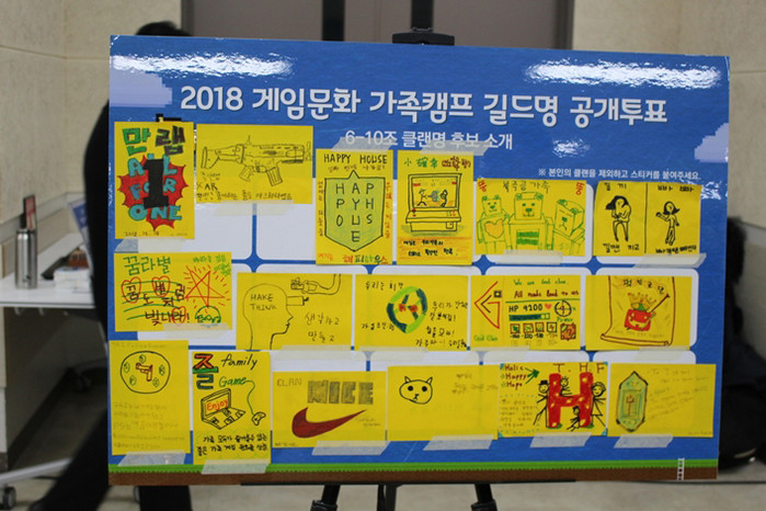 ▲'2018년 게임문화 가족캠프(동계)'에서 참여 가족들이 가족 길드명을 짓고 투표하는 모습.(한콘진 제공) |