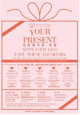 이날 본선 프리젠테이션을 진행한 뒤 이뤄지는 대구시민 100여명의 현장 투표 결과에 따라 각 팀에게는 2000만원에서 3000만원 가량의 펀딩금액이 결정됐다.