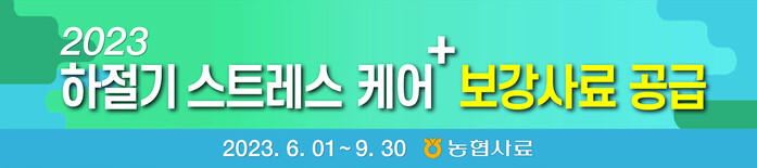 농협사료(대표이사 김경수)가 이달부터 9월 30일까지 약 4개월 간 가축의 하절기 스트레스 케어를 위한 보강사료 공급을 실시한다고 5일 밝혔다.