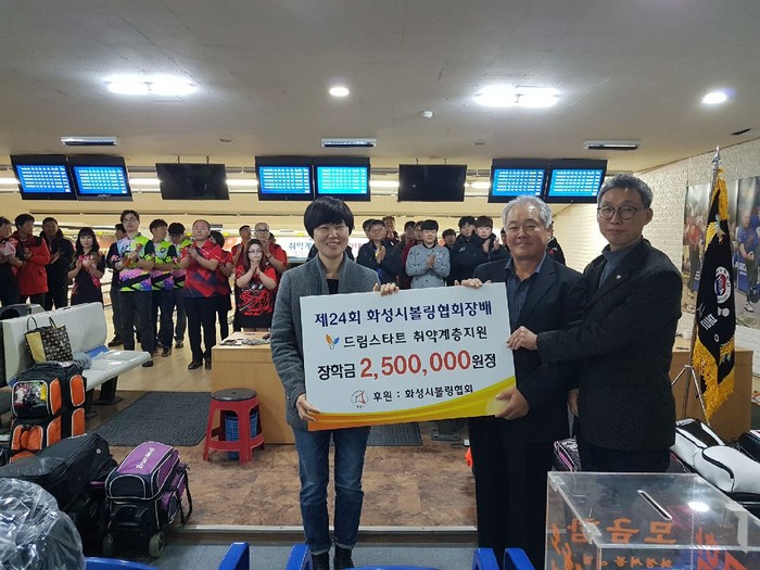 지난해에 이어 올해도 이웃돕기에 나선 볼링협회는 성금 250만원을 모아 화성시 드림스타트 아동 5명에게 각 50만원씩을 전달했다.