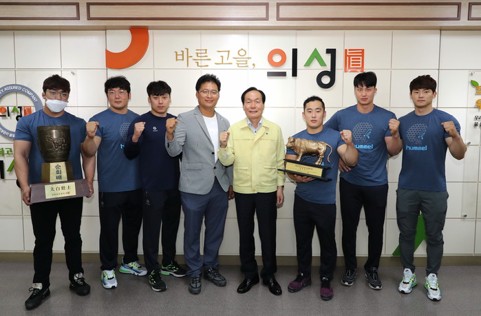 의성군청씨름단 단장인 김주수 의성군수는 대회에 참가하여 좋은 성적을 거둔 선수들을 격려하며,“씨름의 고장 의성의 명예를 빛낸 선수들이 자랑스럽다. 앞으로도 꾸준히 우수한 성적을 거두어‘씨름의 고장’의성군의 명예를 드높여 달라.”고 말했다.