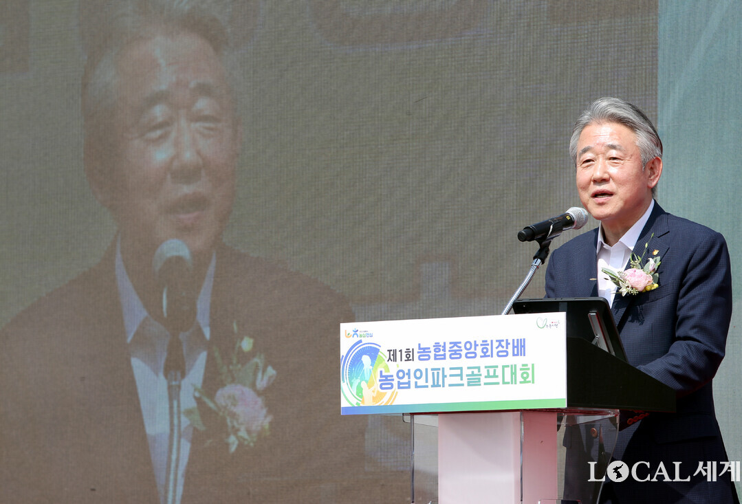 농협중앙회(회장 강호동)는 28일, 경기 연천파크골프장에서「제1회 농협중앙회장배 농업인 파크골프대회」개막식을 개최했다. 강호동 회장이 대회사를 하고 있다. 강호동 회장은“파크골프는 남녀노소 누구나 즐길 수 있는 생활 스포츠로, 농업인의 여가문화 확산에 큰 역할을 할 수 있다”
