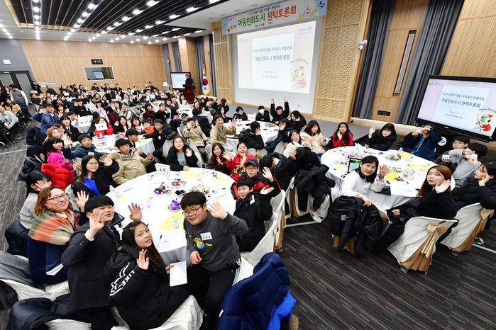이날 원탁토론에는 초·중·고등학생, 학교 밖 청소년 등 청소년 100여 명이 참여해 10개의 원탁에서 ‘놀이와 여가’·‘안전과 보호’·‘건강과 위생’ 등 3개 영역을 주제로 토론했다. 1시간 넘게 이어진 토론의 열기는 뜨거웠다. 토론을 마친 후 각 조에서 1명이 나와 아동친화정책을 제안했다.