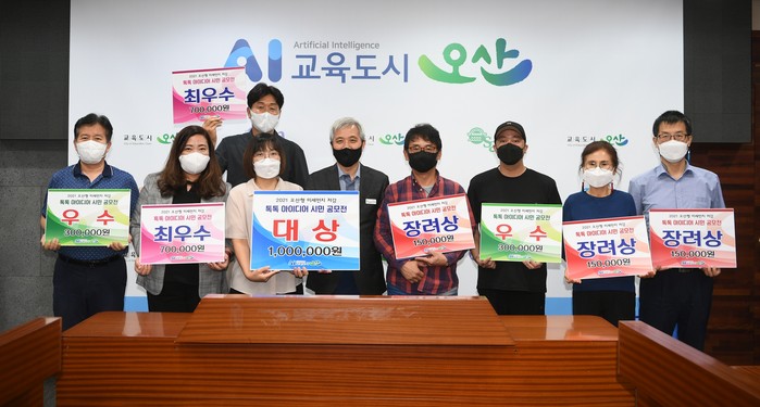 | ▲오산시는 16일 시청 상황실에서 ‘미세먼지 저감 시민 톡톡 아이디어 공모전’시상식을 가졌다.(오산시 제공) |