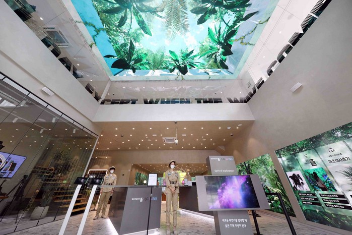 1층에 들어서면 30미터 크기 미디어월에서 자연을 콘셉트로 한 영상, 소리, 향 등 휴식과 힐링 분위기를 연출한다. 구글과 협업해 만든 유튜브 스튜디오를 전용앱으로 예약하면 유명 유튜버들의 라이브 방송에도 참여할 수 있다. 향후 스마트 기기 신제품 론칭 이벤트, 패션·뷰티 등 다양한 브랜드 팝업도 선보일 예정이다.