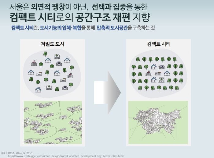 핵심은 직주근접이 가능하고 대중교통 인프라가 집중돼 살기 좋은 서울시의 역세권을 중심으로 주거‧비주거 기능이 결합된 입체적인 복합개발을 통해 ‘컴팩트 시티’를 만드는 것. 컴팩트 시티는 역세권 인근의 토지를 집약적‧입체적으로 이용해 도시기능과 거주를 공간적으로 집약한 도시공간구조를 지칭하는 개념이다.